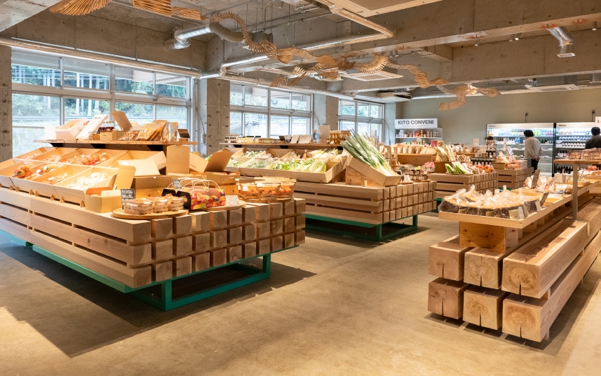 「下市町のみなさんが求めていたのは、飲食店や書店に加え、地元の特産品や木工作家の作品を扱う店がほしいということと、町にかつてのにぎわいを取り戻したいということでした。下市町は江戸時代初期に日本初の商業手形が発行されたほど商工業都市として栄えていた場所で、現在も三宝(献上物や供物を運ぶ台)や割りばしなどの木工業、フルーツを生産する農業が特に盛んですが、その魅力はあまり知られていません。ですから、地元の人に喜んでもらえるのはもちろん、来訪者や移住者が増えるきっかけになるような施設をつくりたいと思いました。それには、私たちが長年培ってきた小売業のノウハウも生かせるな、と」